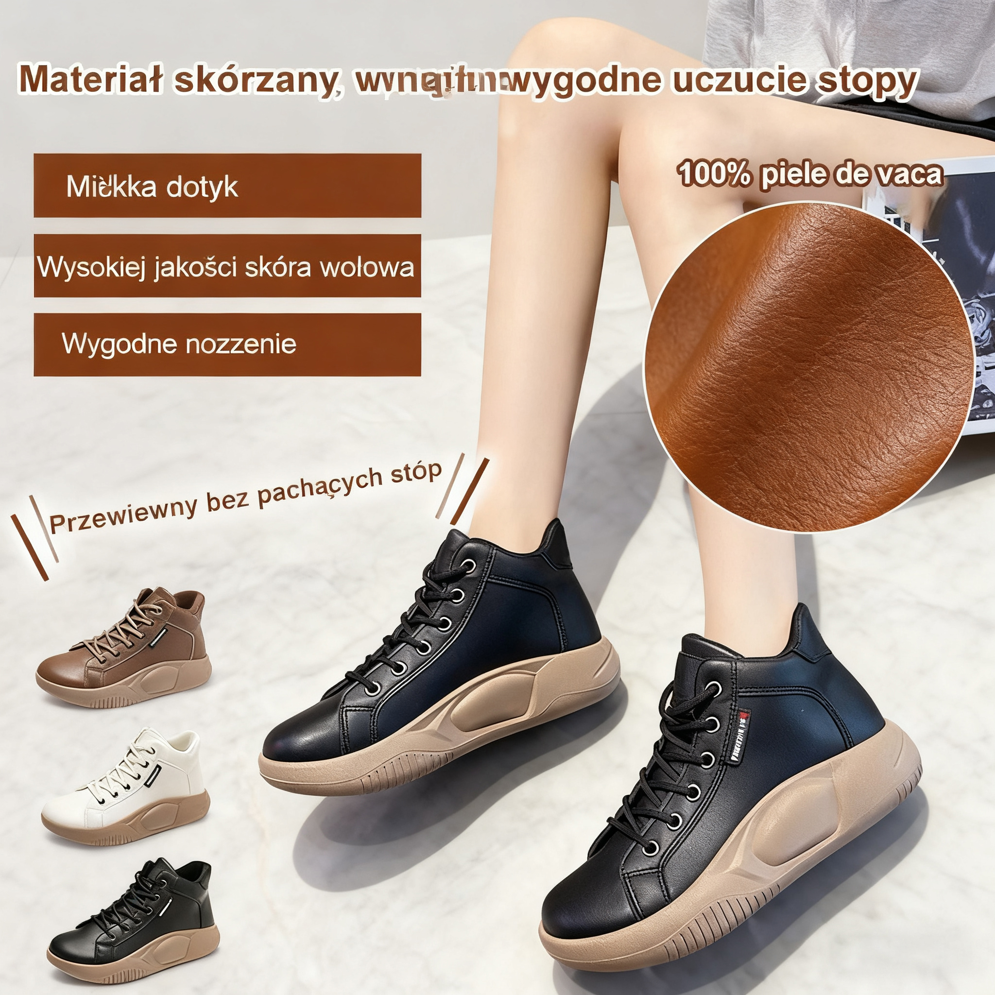 【35-43】Bujane buty w stylu retro z grubą podeszwą ze skóry bydlęcej w nowym stylu, modne, wszechstronne buty codzienne